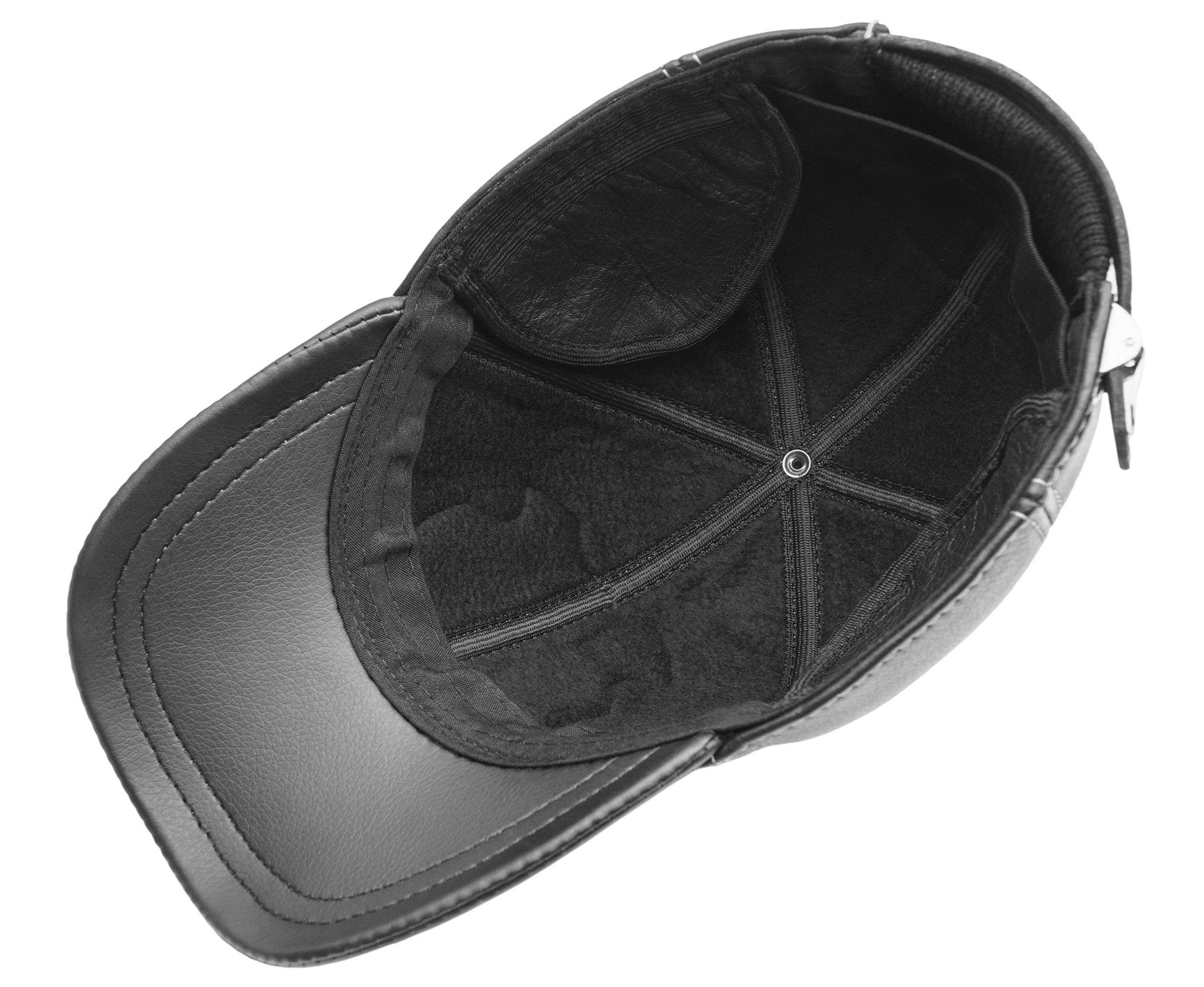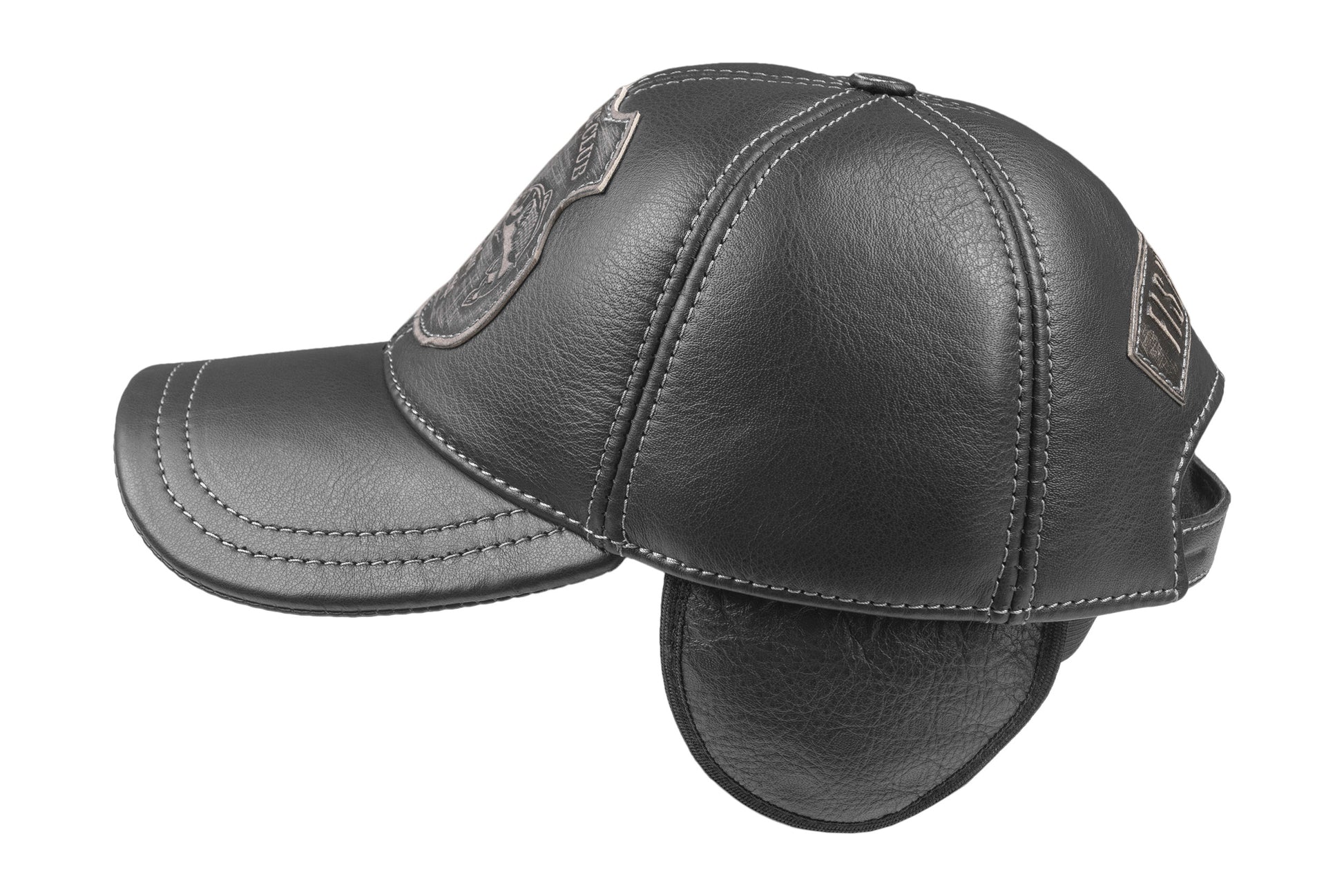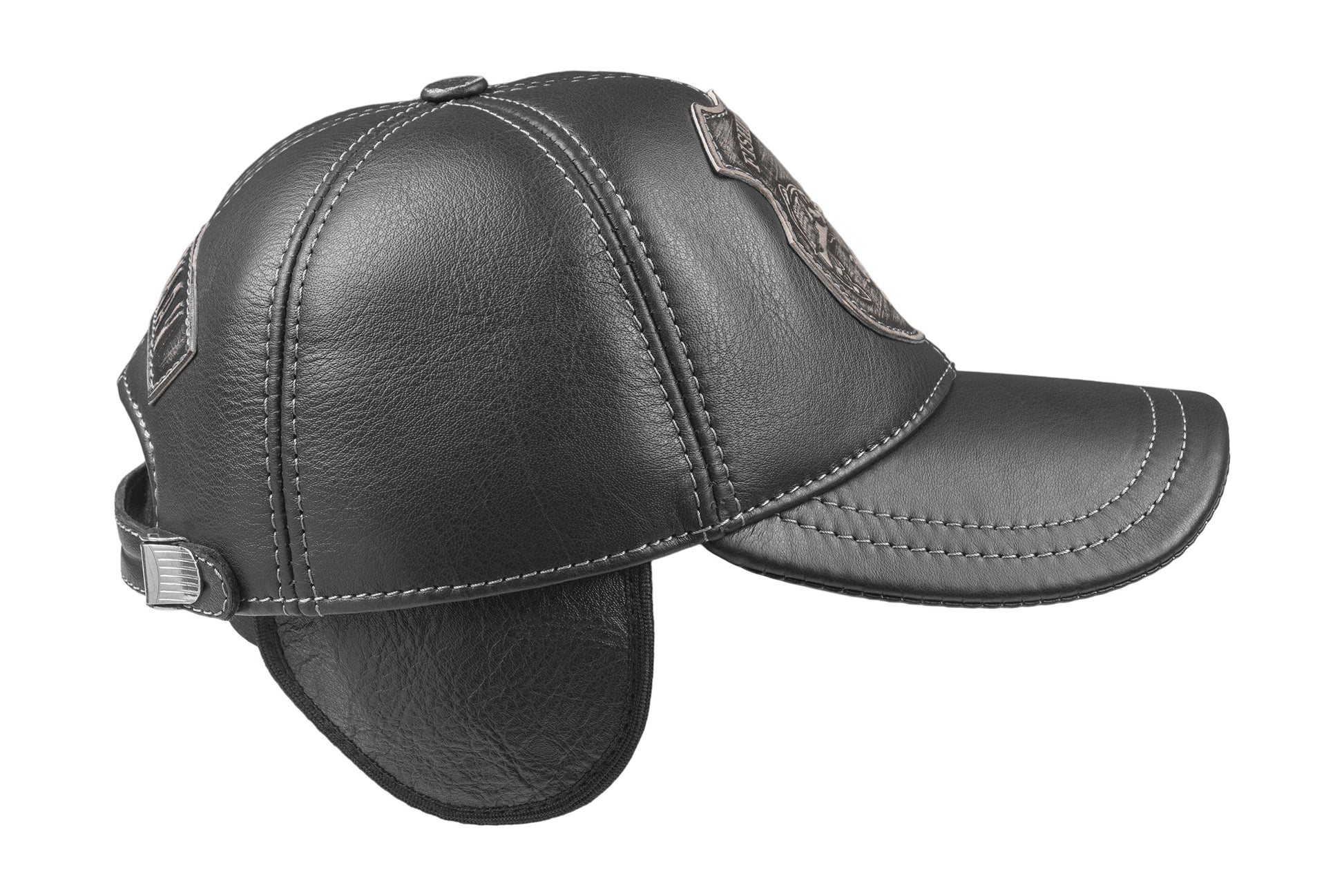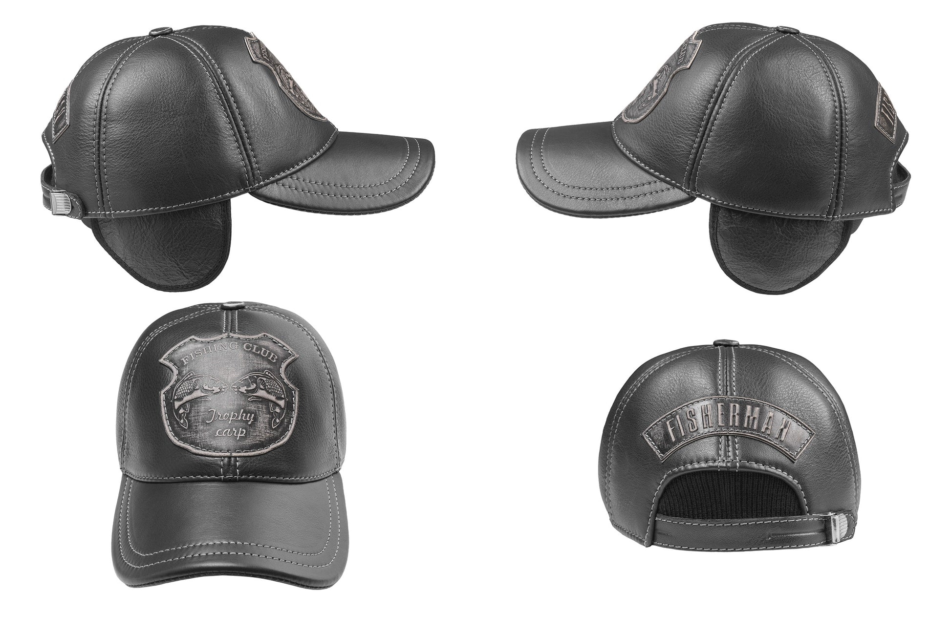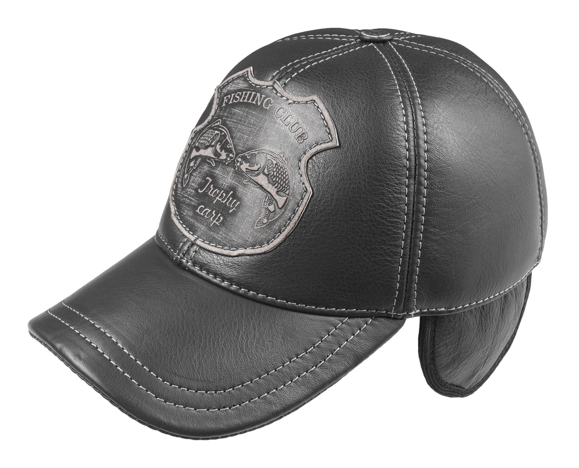 Leather Fishing Cap: Handmade Black Hat with Ear Flaps and Trophy Carp Badge, Winter Fishing Gear | Apero Bullo