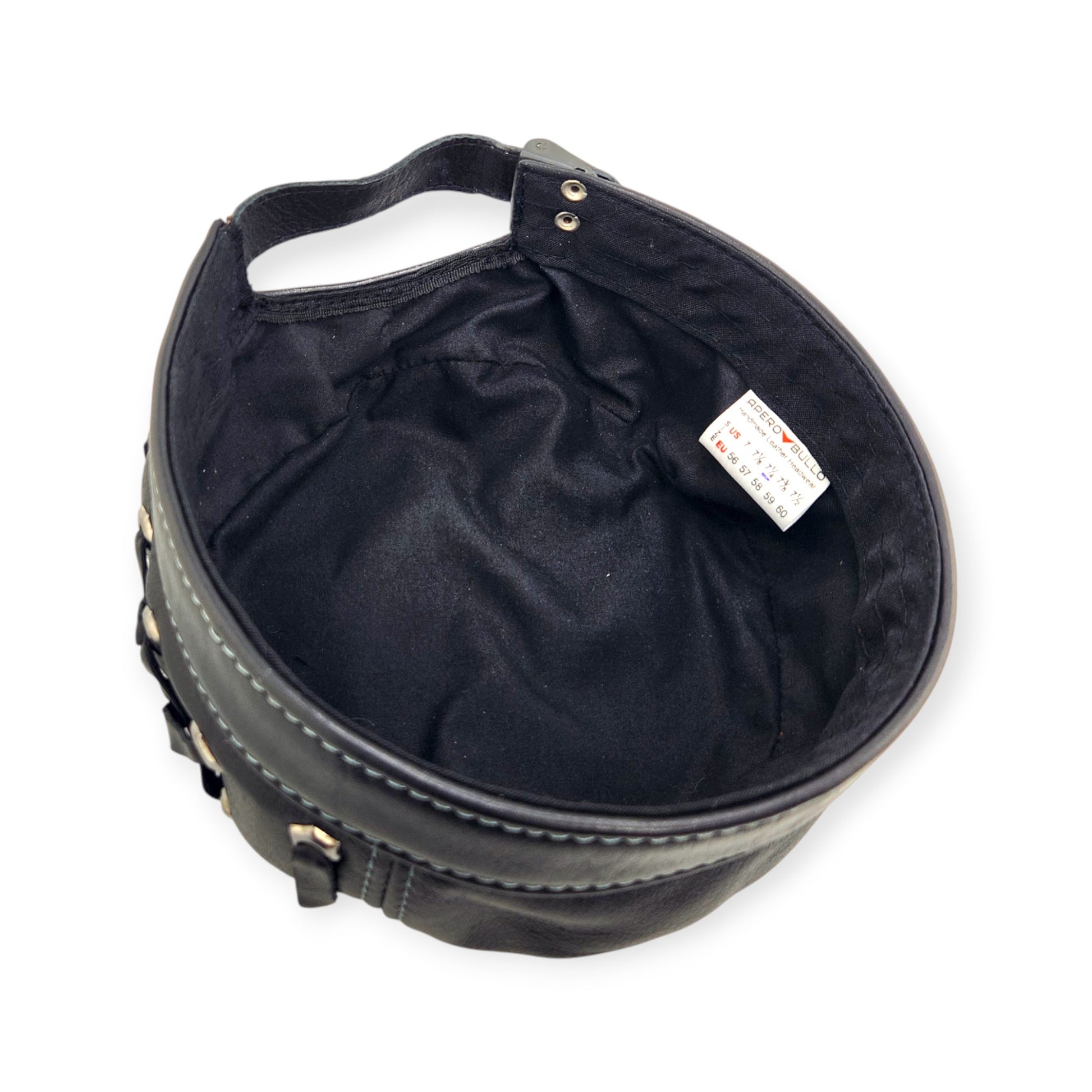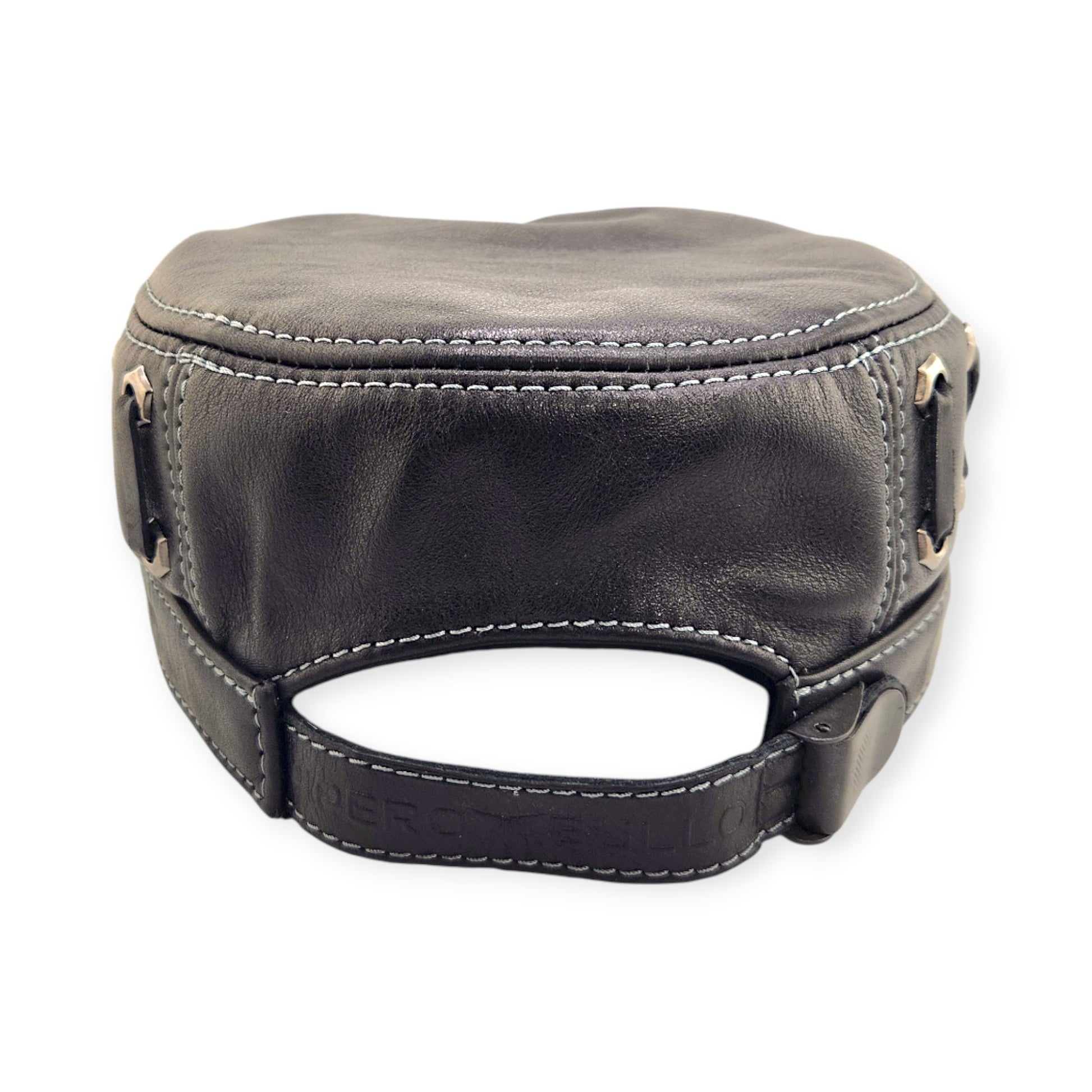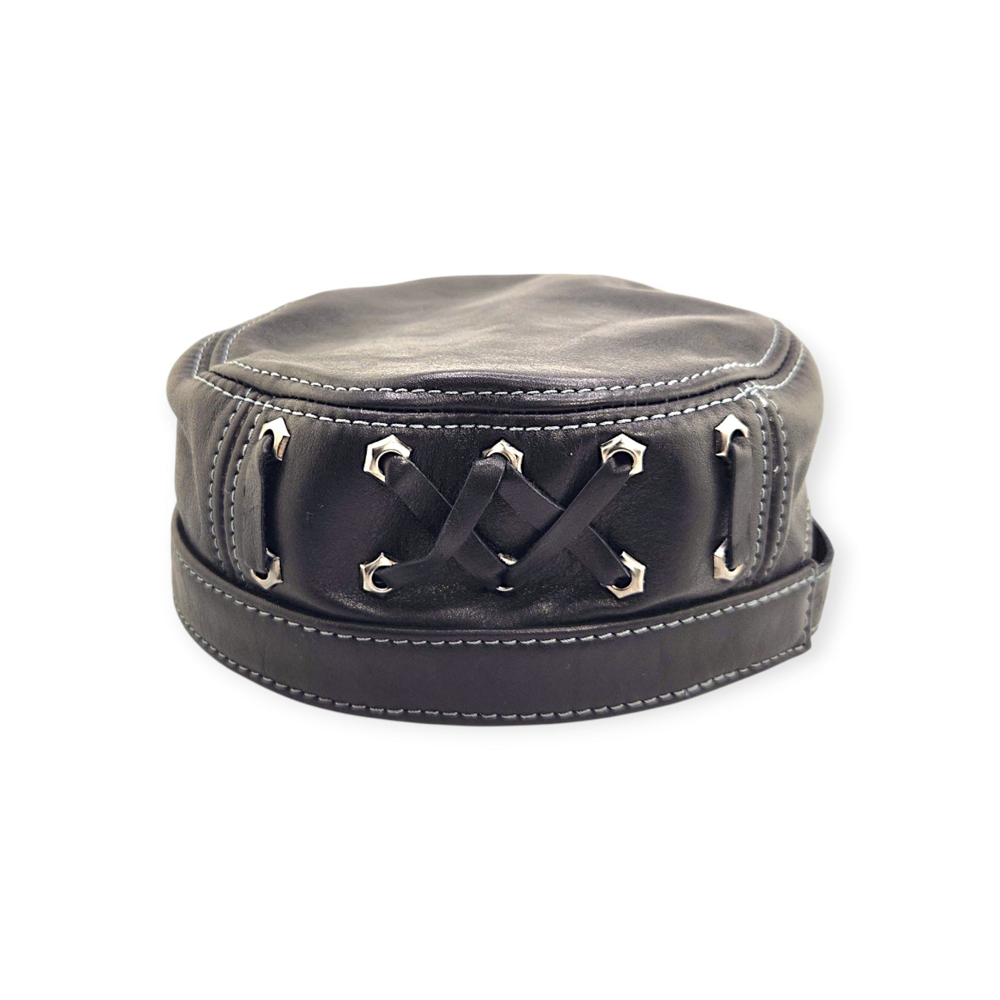 Leather Biker Hat: Handmade Black Motorcycle Cap for Men with Lace-Up Sides, Italian Leather | Apero Bullo